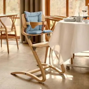 This Leander highchair cushion is tailored to follow the shape of the chair and give your child a softer, more supportive seat. In Dusty blue, it adds a gentle colour accent that sits beautifully in calm, modern interiors. The cushion brings together comfort and design in a simple way that feels natural around the family table.