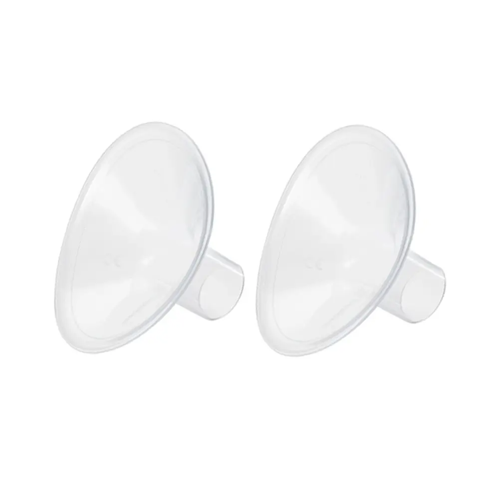The Medela PersonalFit™ PLUS breast shield set is designed to enhance the pumping experience through an improved fit and more efficient performance. The breast shield features a wide opening angle of 105°, allowing it to sit naturally on the breast while reducing pressure on the milk ducts. The oval shape of the shield can be rotated 360°, making it easy to position in the most comfortable way. This helps tailor pumping to your body. The set includes two breast shields for personal use.