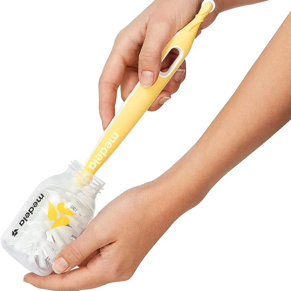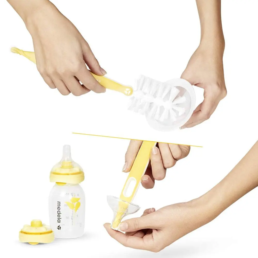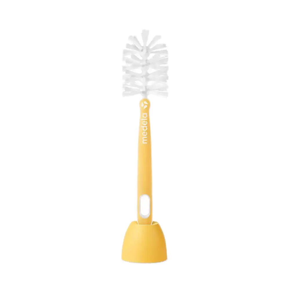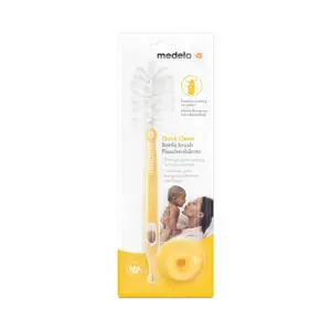 • Quick Clean bottle brush including teat cleaner and stand used as part of a breastfeeding or pumping routine