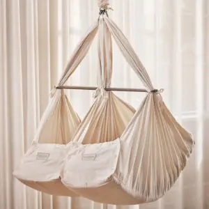 A cozy, womb-like space for peaceful twin sleep. GOTS-certified and designed to help your little ones sleep in sync – and longer.