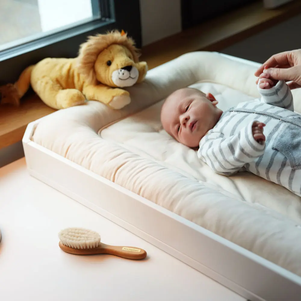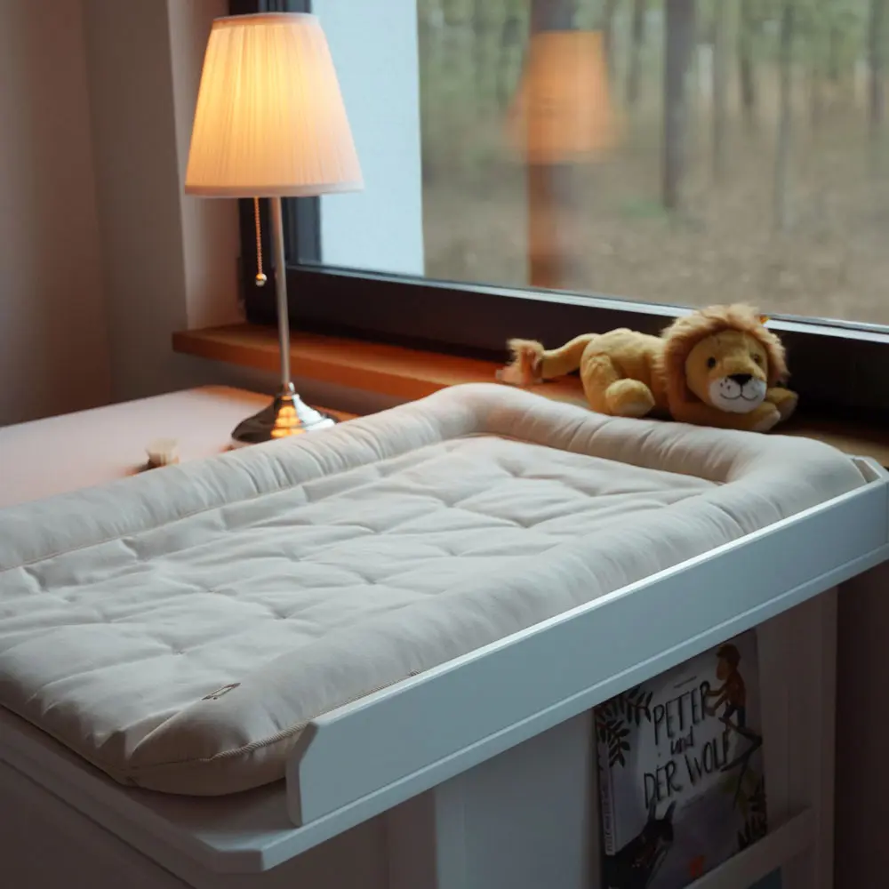 Pair the mat with the MoveMi® Changing Top to create a complete changing station on the MoveMi® dresser. When the changing phase ends, the top can be removed and the dresser continues as storage, so the set-up evolves instead of being replaced. This modular idea aligns with Montessori: practical, purposeful pieces that adapt with the child. The cover and filling are selected for daily comfort and easy care.