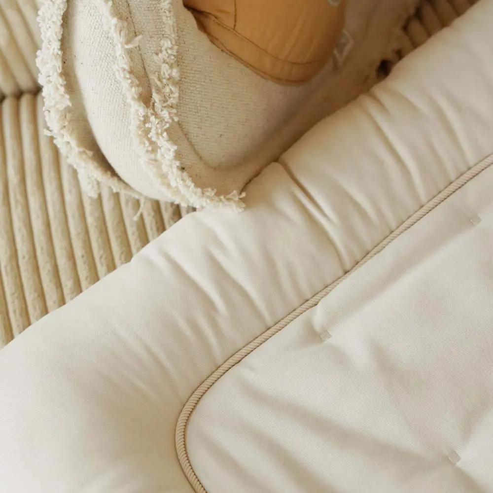 Cover in GOTS-certified organic cotton with filling in Oeko-Tex-certified recycled polyester. Machine washable up to 40 °C. Made in China.