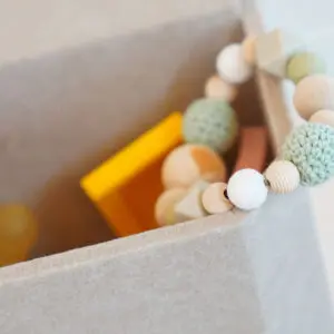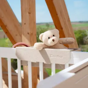 Practical bed basket that attaches to the side of the MoveMi® Bed. Keeps toys, books, and baby essentials within easy reach.