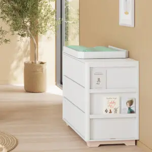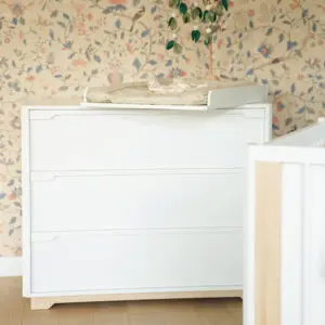 The Naolima MoveMi® Dresser Changing Top converts the dresser into a changing table with raised edges for safety. Practical, stylish and removable.