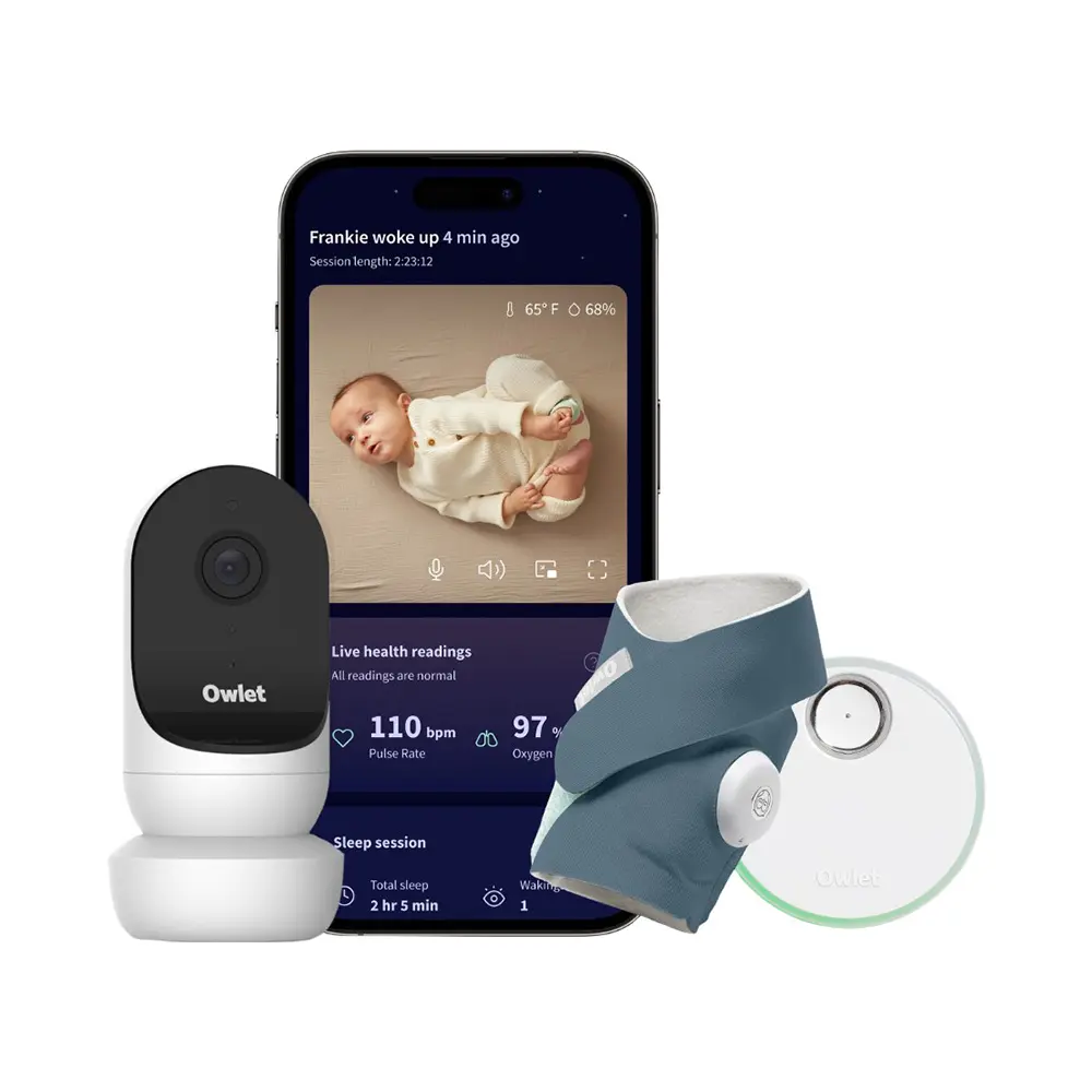 The Bedtime Blue bundle combines sleep insights with clear video monitoring. The Dream Sock tracks indicators while the Cam 2 provides live visuals.