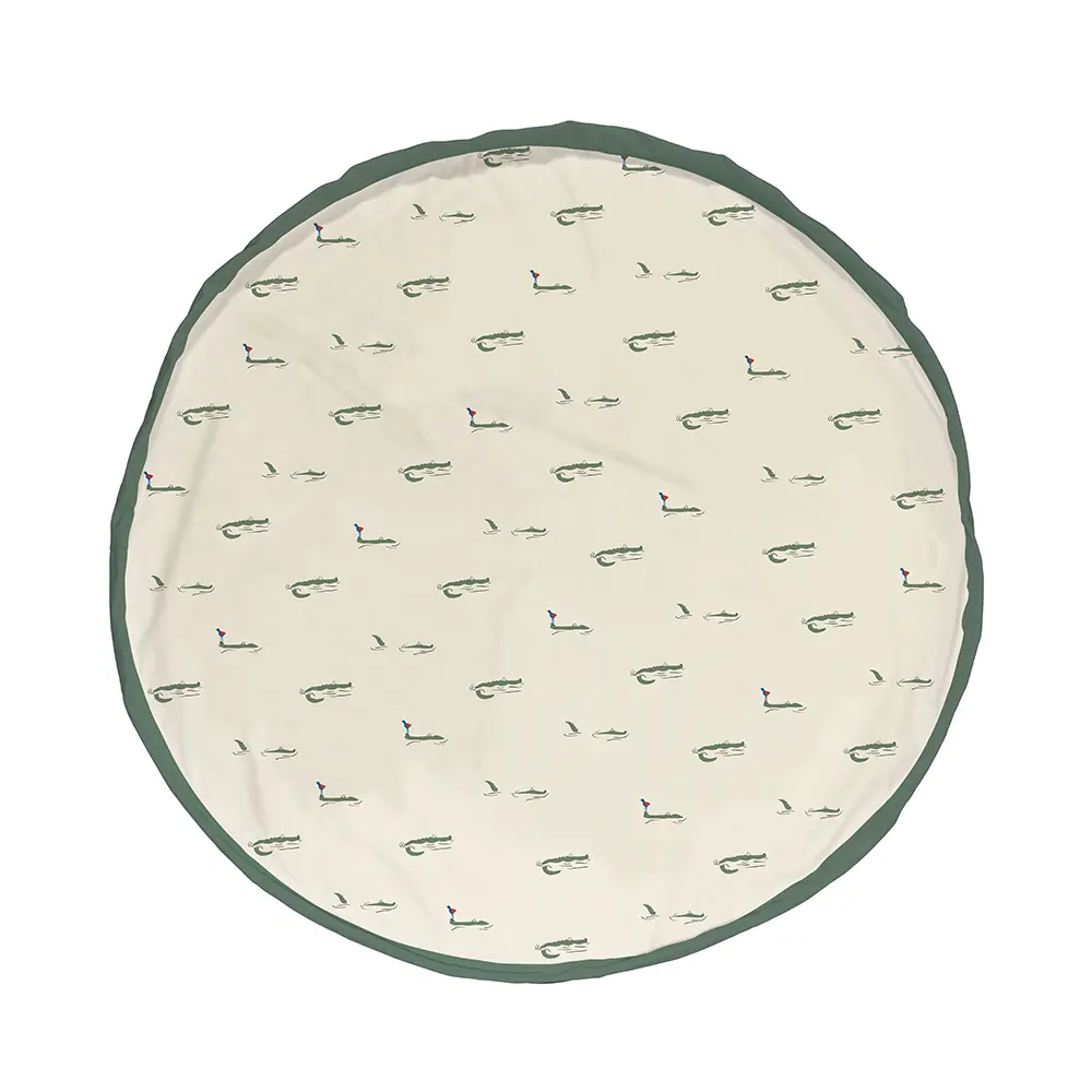 Toys are spread out on the large playmat and after playtime, simply pull the drawstring to turn it into a handy bag.