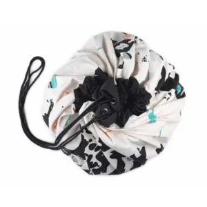 Toys are spread out on the large playmat and after playtime, simply pull the drawstring to turn it into a handy bag.