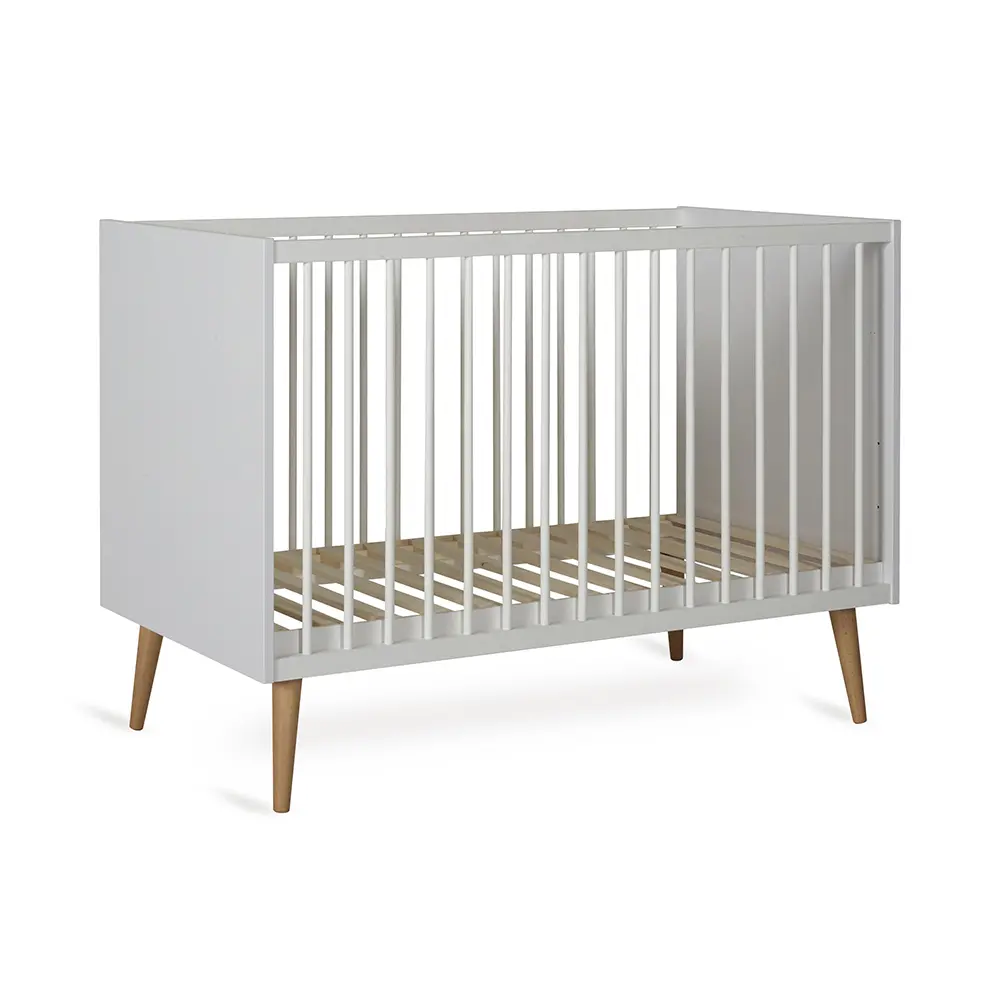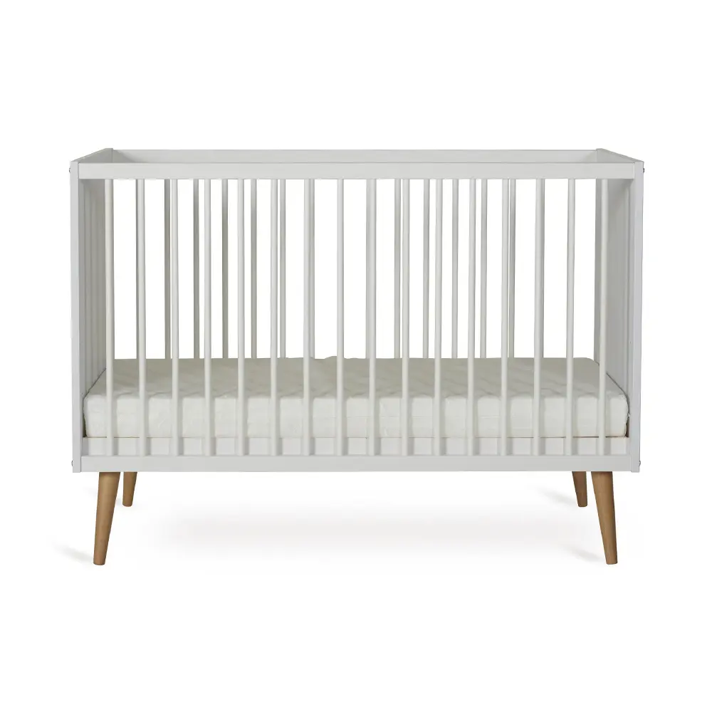 The Cocoon Baby Cot provides a safe and stylish sleeping space that can be adapted to your needs thanks to its three-position adjustable base. Its solid beech feet add natural warmth, and the cot meets safety standards to give you complete peace of mind. Designed as part of the Cocoon Collection, it combines minimalist design with personal expression to bring calm and character to your dream nursery.