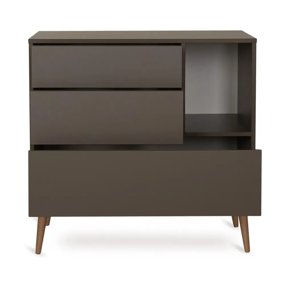 Bring modern functionality to your nursery with the Cocoon Chest. It features clean lines, handleless push-to-open drawers and a timeless minimalist design. Personalise it with colourful, interchangeable niches to suit your taste. The optional extension transforms the chest into a practical changing table that offers both beauty and functionality. This stylish, customisable design will evolve with your family and enhance any contemporary nursery.