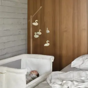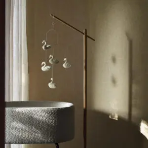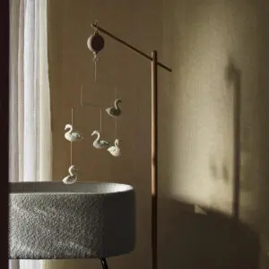 Add a dreamy touch to the nursery with the Quax Baby Mobile. Available in charming designs like clouds, birds, and swans, it pairs perfectly with the Quax wooden stand to gently soothe and entertain your baby.