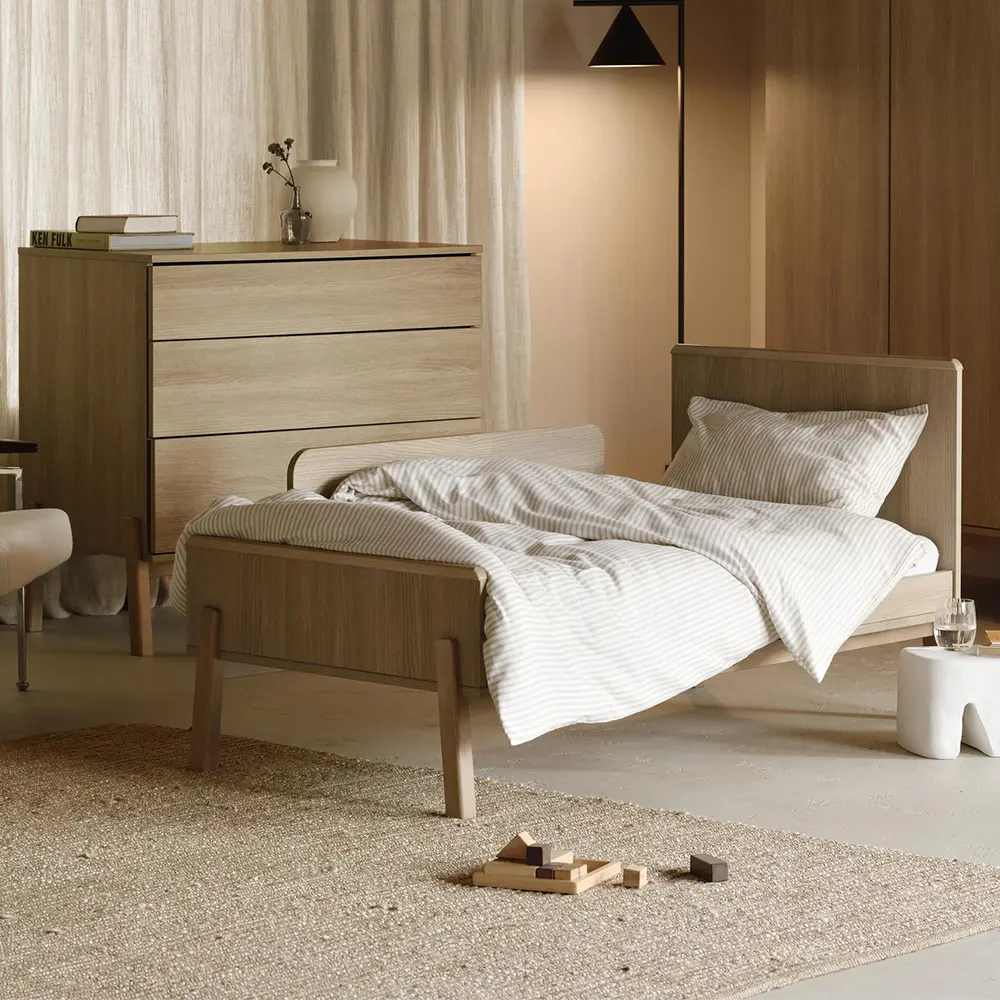 The Quax Kyo collection brings balance and refinement to the nursery. Inspired by Scandinavian serenity, Japanese minimalism and soft modernist design, Kyo combines clean lines with warm wood tones and subtle modularity.