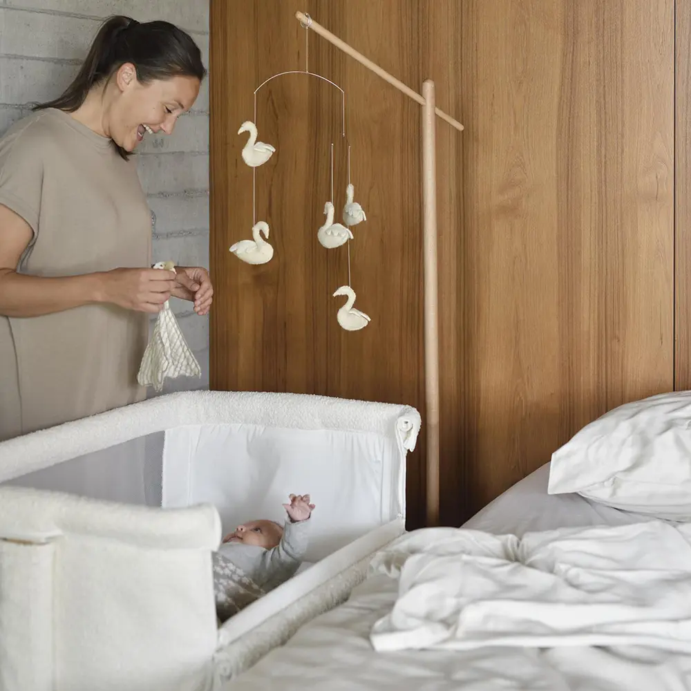 The Quax Side-by-Side Crib allows your baby to sleep safely next to you while maintaining their own secure sleeping space. The crib can be placed directly next to the parents’ bed, making night feedings, comforting and bonding moments easier and more natural.