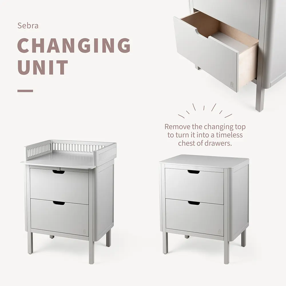 The Sebra Changing Unit with drawers is a changing unit that can easily be converted into a classic storage unit when there is no longer a need for a changing unit.