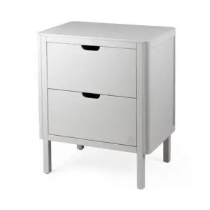 The two drawers allow storage of clothing, nappies, toys or other baby essentials. The drawers are equipped with “soft close”, which makes sure that the drawers are closed gently. The fronts feature notched handles which, along with the wardrobe’s rounded corners, help improve safety in your child’s room because there are no sharp corners or edges.