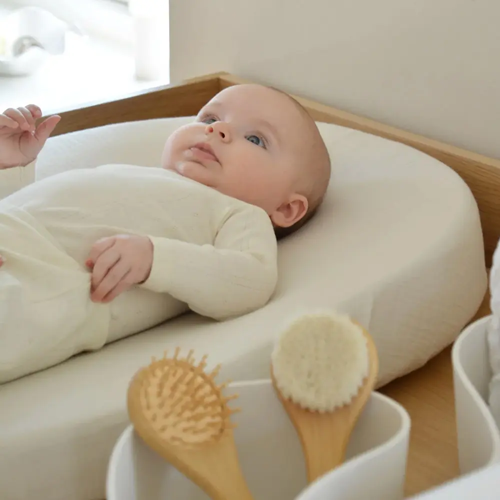Complete your changing space by pairing this cover with muslin cloths, storage baskets, and other natural nursery accessories. It also looks beautiful on a wooden changing table for a warm and soothing atmosphere.