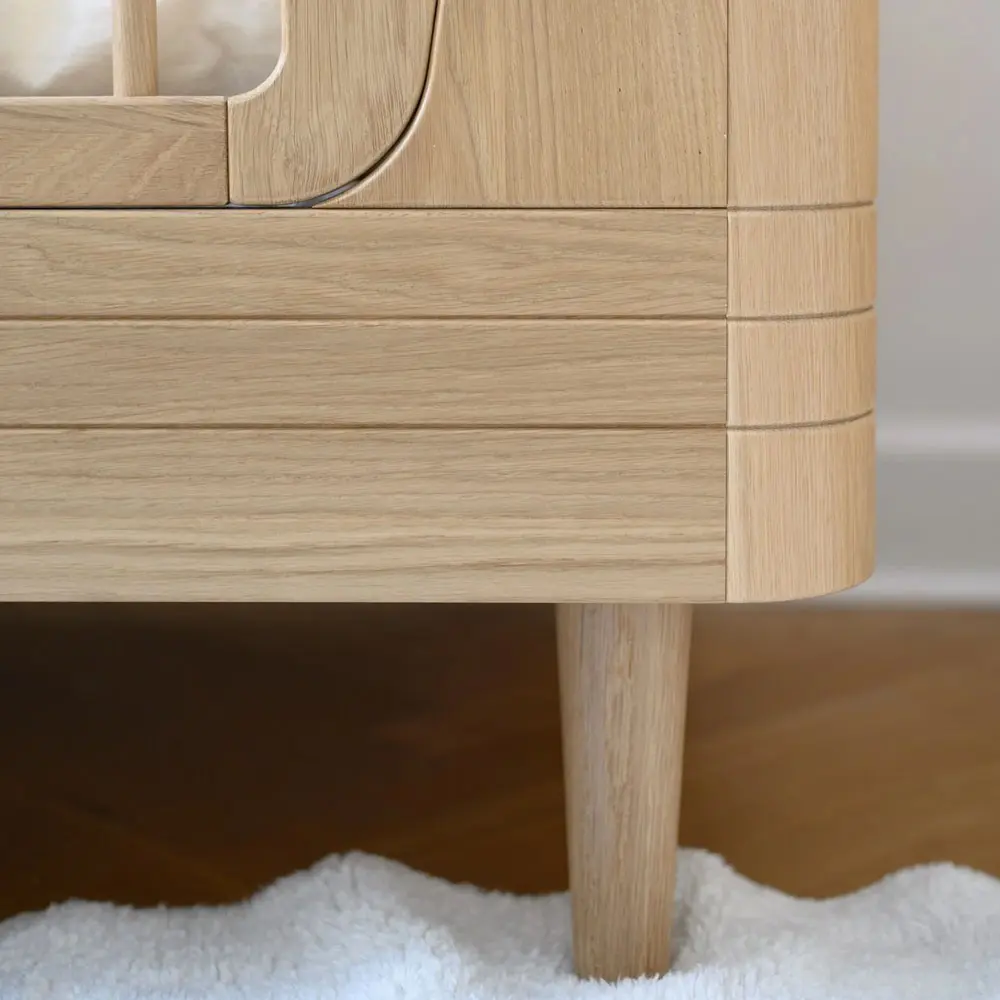 The beautiful Nature Baby Bed, crafted from solid oak, is now even more elegant with a version that has no visible screws. Designed with both parent and child in mind, it combines timeless Scandinavian simplicity with practical functionality.